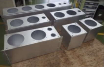 材料切断・曲げ加工や穴あけ等の板金加工により、ご要望に合わせた形状のボックスを製作致します。