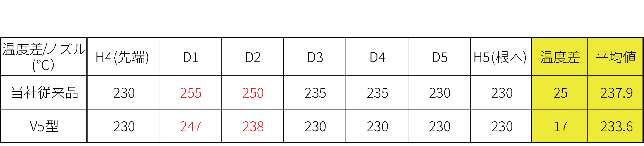 ホットランナーの温度差(バラツキ)を30%低減できます。